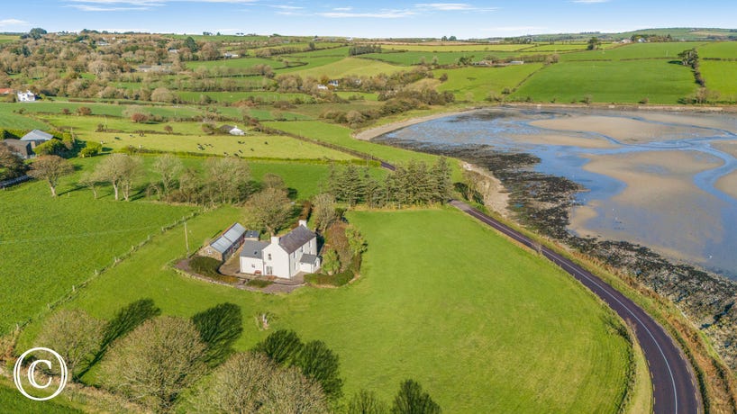 In a secluded position looking over Courtmacsherry Bay, the house is set above the Wild Atlantic Coast Road, with the nearest pub and restaurant 1 mile away. You’ll find shops and pubs in the villages of Timoleague and Kilbrittain, both 3 miles away, while the historic port of Kinsale, 12.5 miles away, is renowned for its excellent eateries. On the other side of the estuary, Courtmacsherry is one of Ireland’s premier angling centres and is also a base for whale-watching trips.
