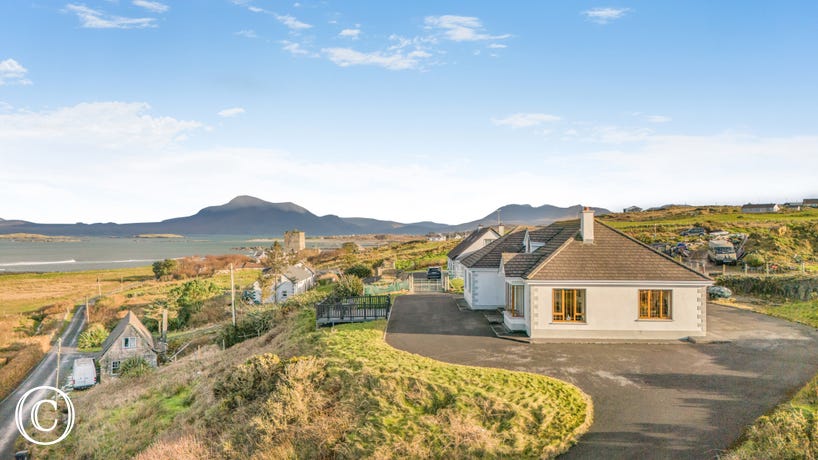 Discover the ruins of Renvyle Castle (300 metres) while wandering down to the water’s edge. Renvyle Beach, a beautiful cove about 2 miles away, offers white sand and crystal-clear water perfect for swimming. The Mweelrea Mountains of County Mayo provide a stunning backdrop, and you can drive 10 miles for a challenging hike or mountain biking tour. In between the counties, the vast waters of Killary Fjord stretch out between undulating hills; visit Killary Harbour (13 miles) to embark on a scenic fjord boat tour.