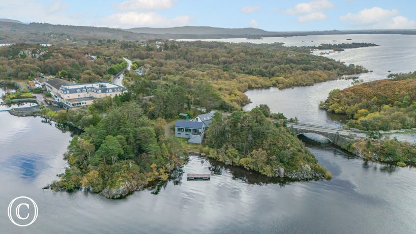 Embrace the unique charm of this detached lakefront house, perched in an elevated location along the shores of Lough Conn. Located just a short stroll from the renowned beauty spot of Pontoon Bridge, nestled between Loughs Conn and Cullen, this property offers an unparalleled setting for a family holiday or a group gathering. 4 miles away, the small town of Foxford provides convenient access to shops, pubs, and restaurants. Experience world-class salmon and trout fishing on Lough Conn, golf opportunities await at various nearby courses, while other local activities include horse riding, falconry, and clay pigeon shooting. Discover the region's rich history at the Michael Davitt Museum (12 miles) or the Museum of Country Life (9 miles). Conveniently located 11 miles from Ballina and 8 miles from Castlebar, the property serves as an ideal base for touring Mayo.